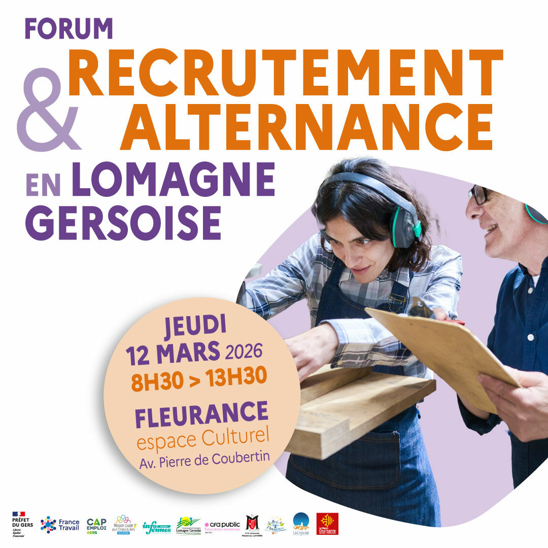 Le 12 mars 2026, participez au Forum du Recrutement et de l’Alternance organisé par la Communauté de Communes de la Lomagne Gersoise avec la présence des acteurs de l’emploi du territoire, dont Cap Emploi 32.